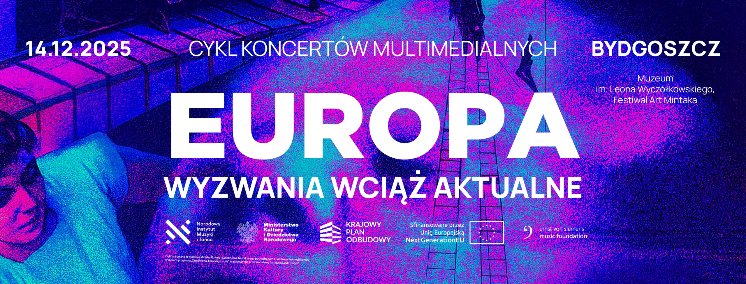 EUROPA – WYZWANIA WCIĄŻ AKTUALNE to interdyscyplinarny projekt artystyczny, który łączy współczesną muzykę kameralną, elektronikę, performans, tekst i film awangardowy. Jest to nie tylko wydarzenie artystyczne, ale również platforma do refleksji nad współczesną kondycją Europy. Projekt jest odpowiedzią na aktualne kryzysy geopolityczne, ekonomiczne, klimatyczne i społeczne, z którymi mierzy się dziś zarówno społeczeństwo, jak i sektor kultury.